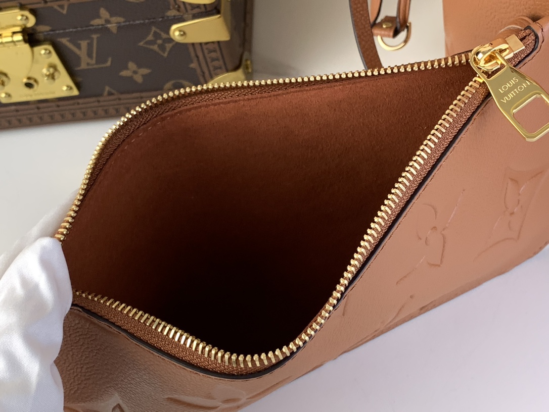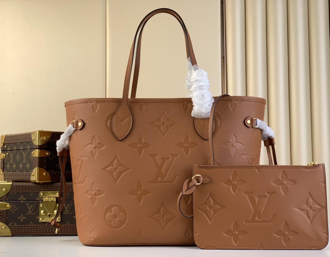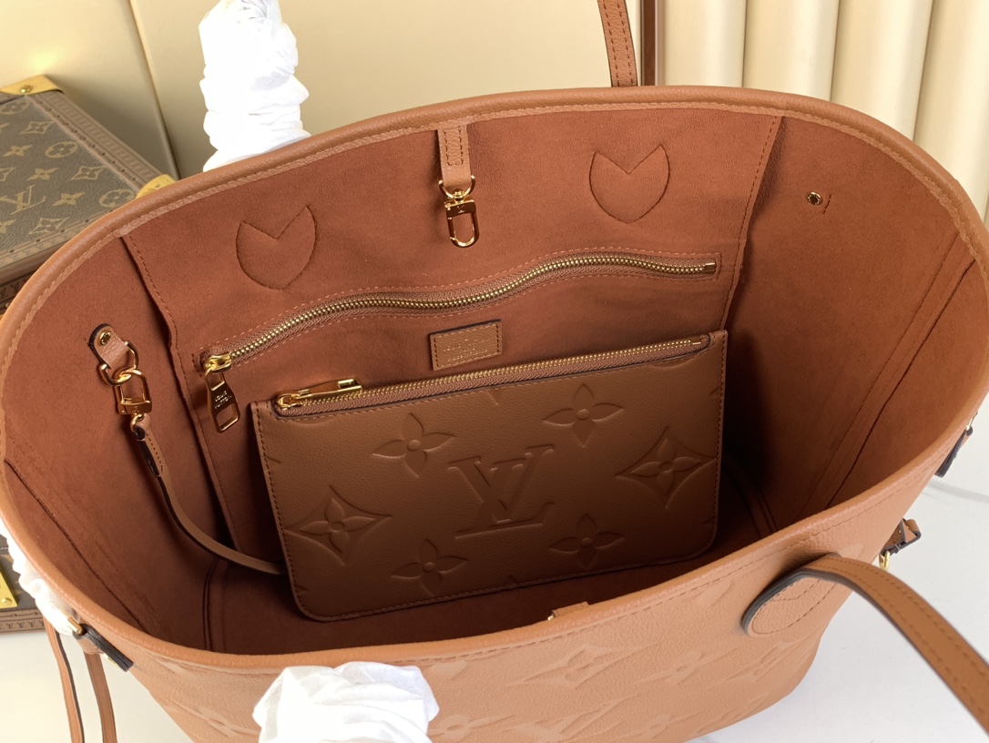 A sophisticated choice for commuting in the city, the Neverfull MM tote unites timeless design with heritage details. It is crafted from signature Monogram Empreinte leather and has adjustable side laces to cinch the silhouette, depending on the number of items inside. The removable pouch can be used as a clutch or an extra pocket for valuables.