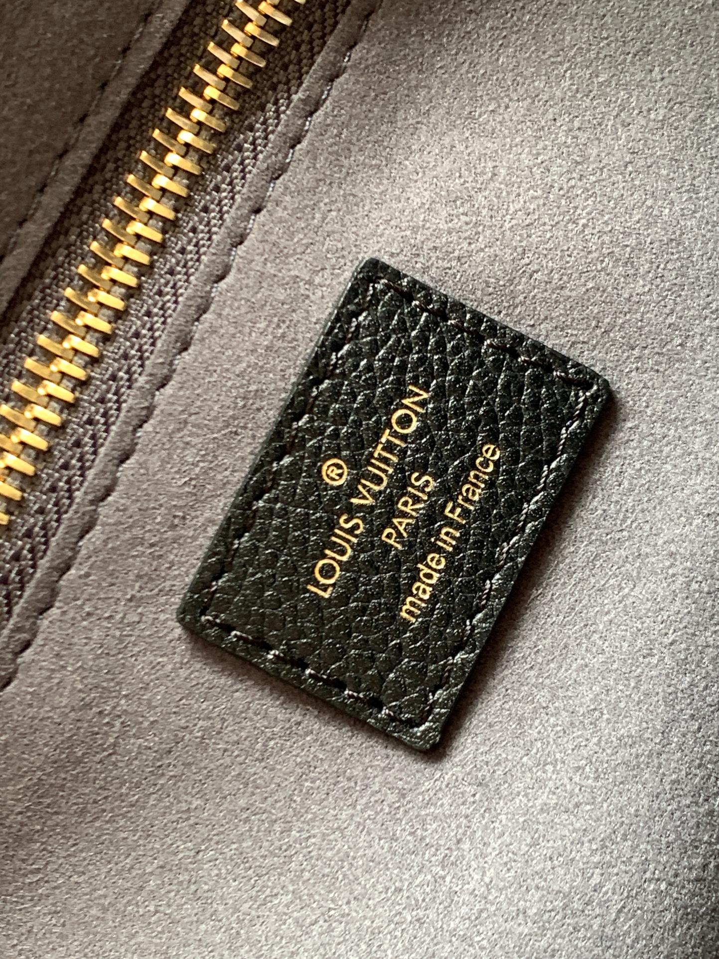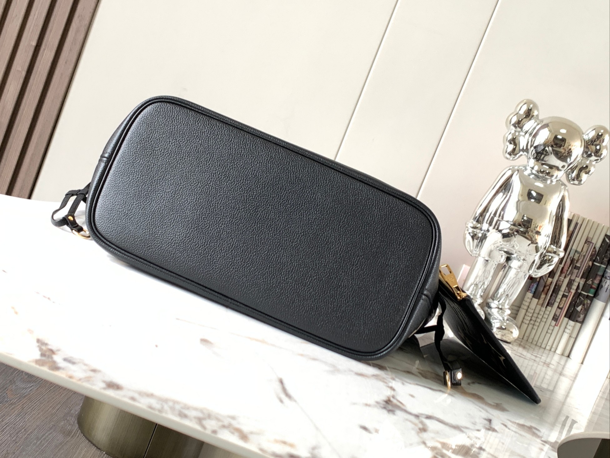 Ideal for everyday use, the roomy Neverfull MM tote bag is made from black cowhide leather with the Monogram pattern embossed then printed in beige on the leather. Cinch the side laces and this tote transforms into an elegant city bag. It can be carried on the shoulder or the elbow, thanks to the long shoulder handles.