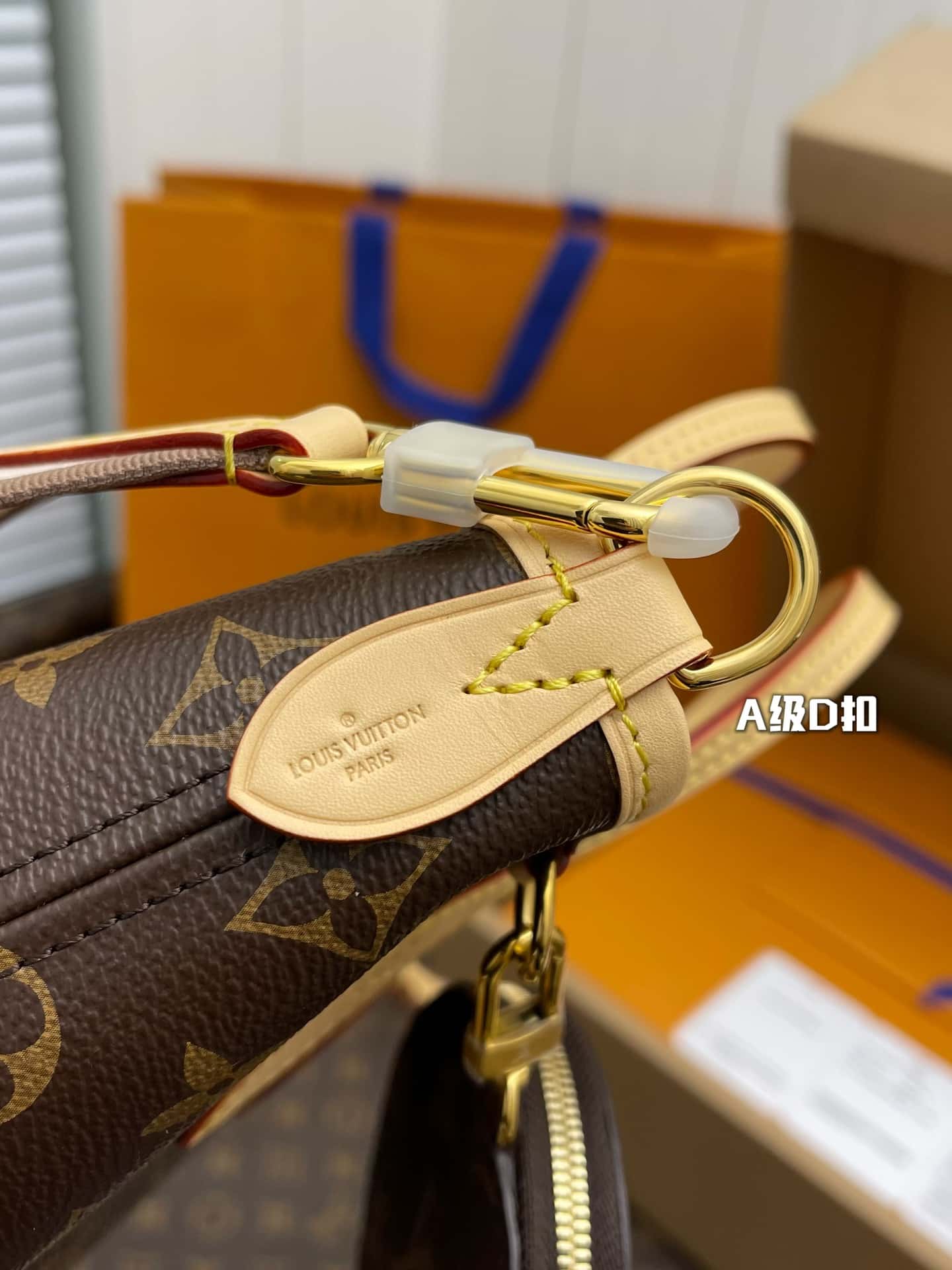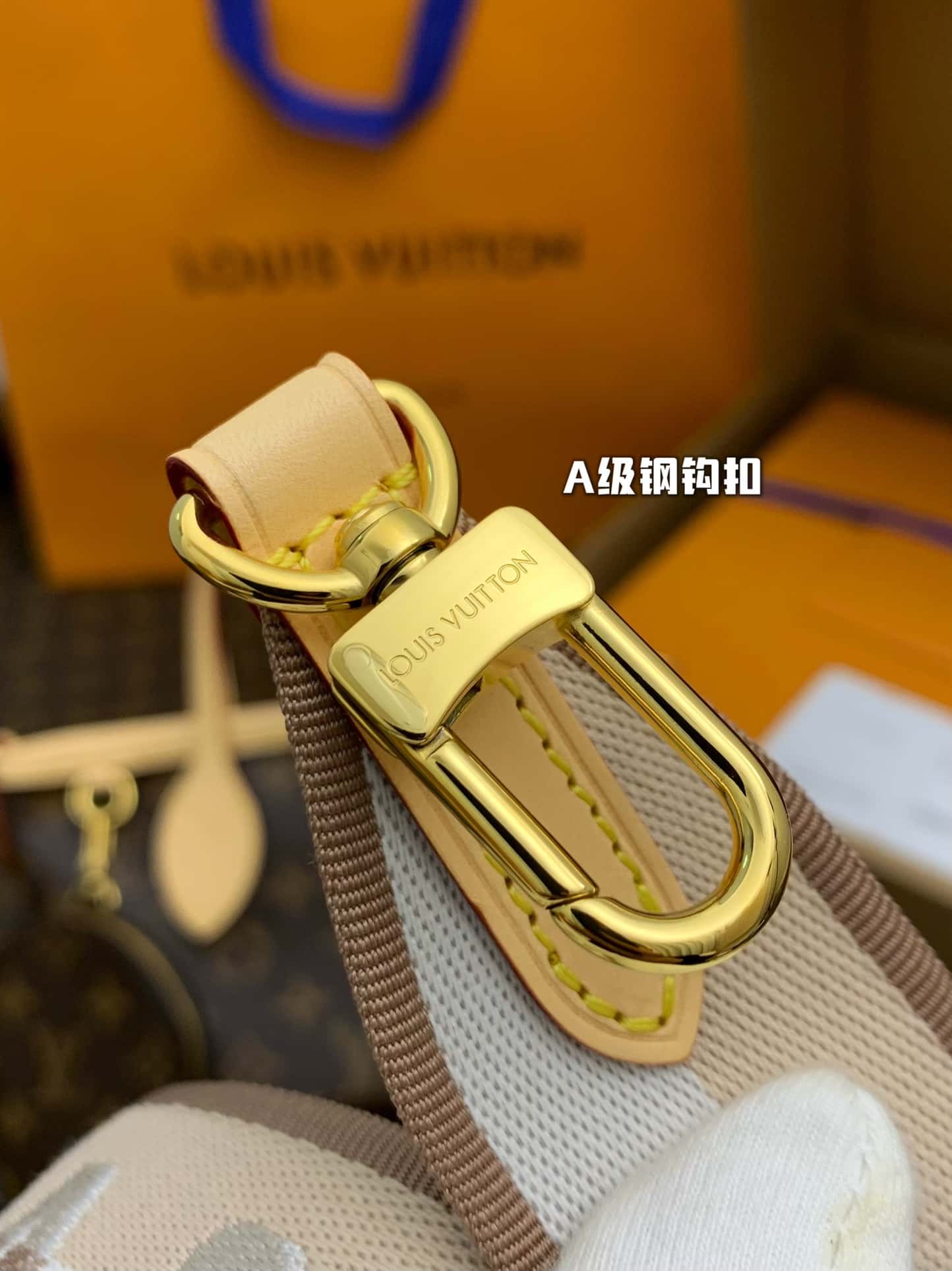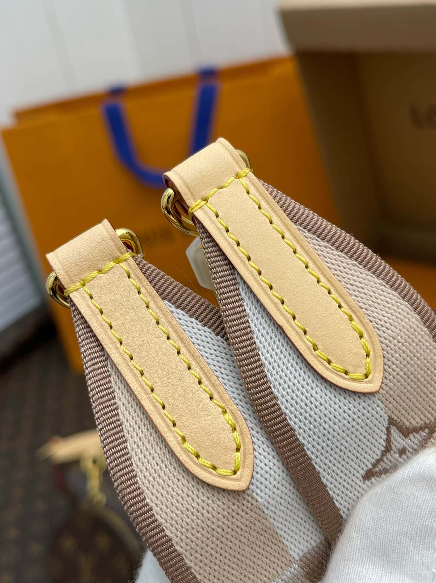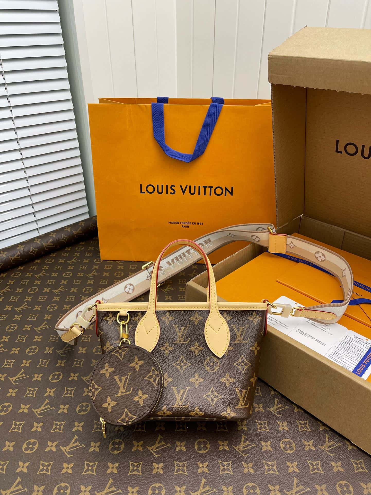 This season the House’s forever favorite, the Neverfull, gets reinvented as a mini-tote: the Neverfull BB handbag. This scaled-down version features an adjustable and detachable textile strap as well as a playful coin purse attached to a D-ring. It is just the right size for small essentials like a smartphone and compact wallet.