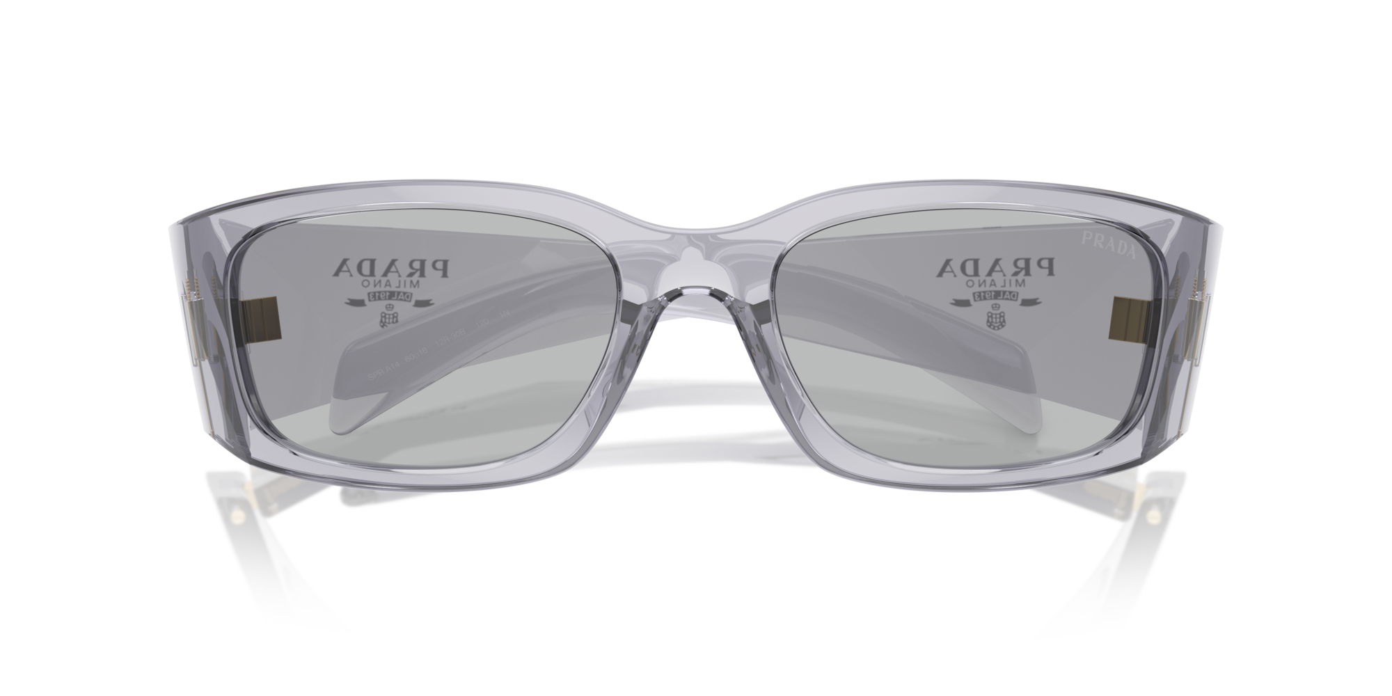 The Prada PR A14S 12R30B model, a one-of-a-kind, elegant, Transparent Grey frame is the perfect choice for Woman.
