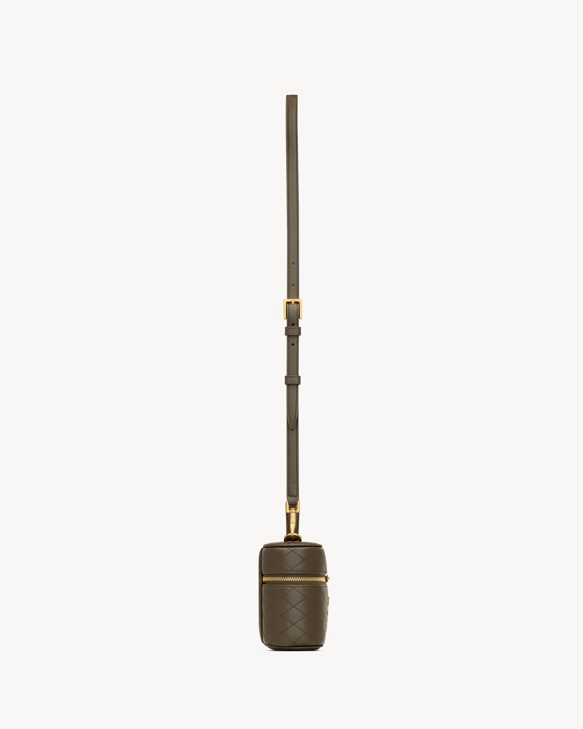 Zip-around vanity bag decorated with the CASSANDRE and diamond-quilted overstitching.