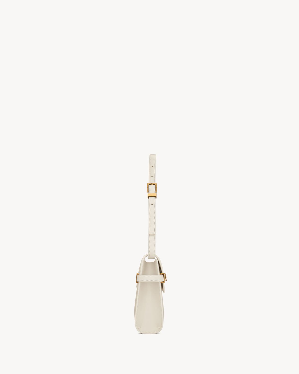 Manhattan with small flap on top, featuring compression tabs on the sides and an adjustable and detachable shoulder strap.
