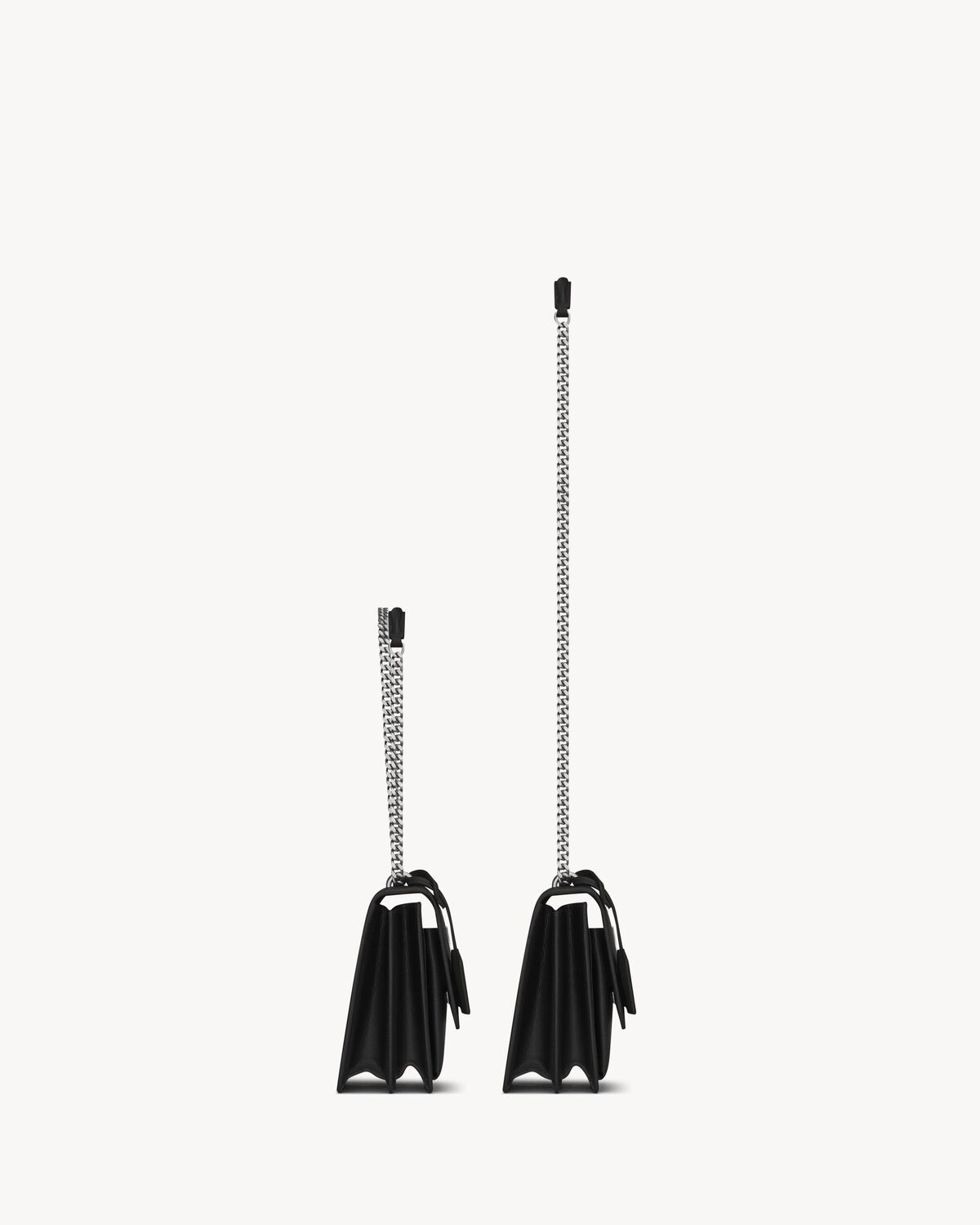 SLIDING CHAIN STRAP CAN BE WORN ON THE SHOULDER OR CROSSBODY.