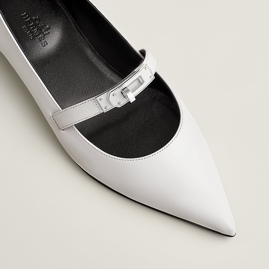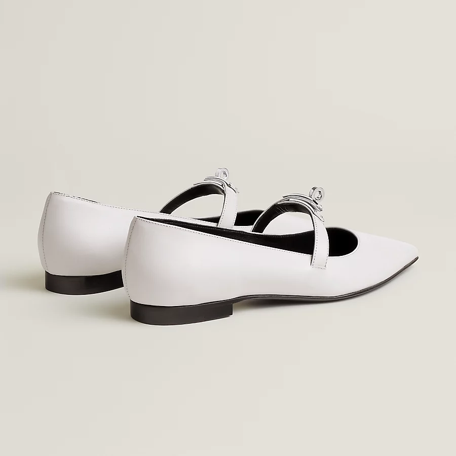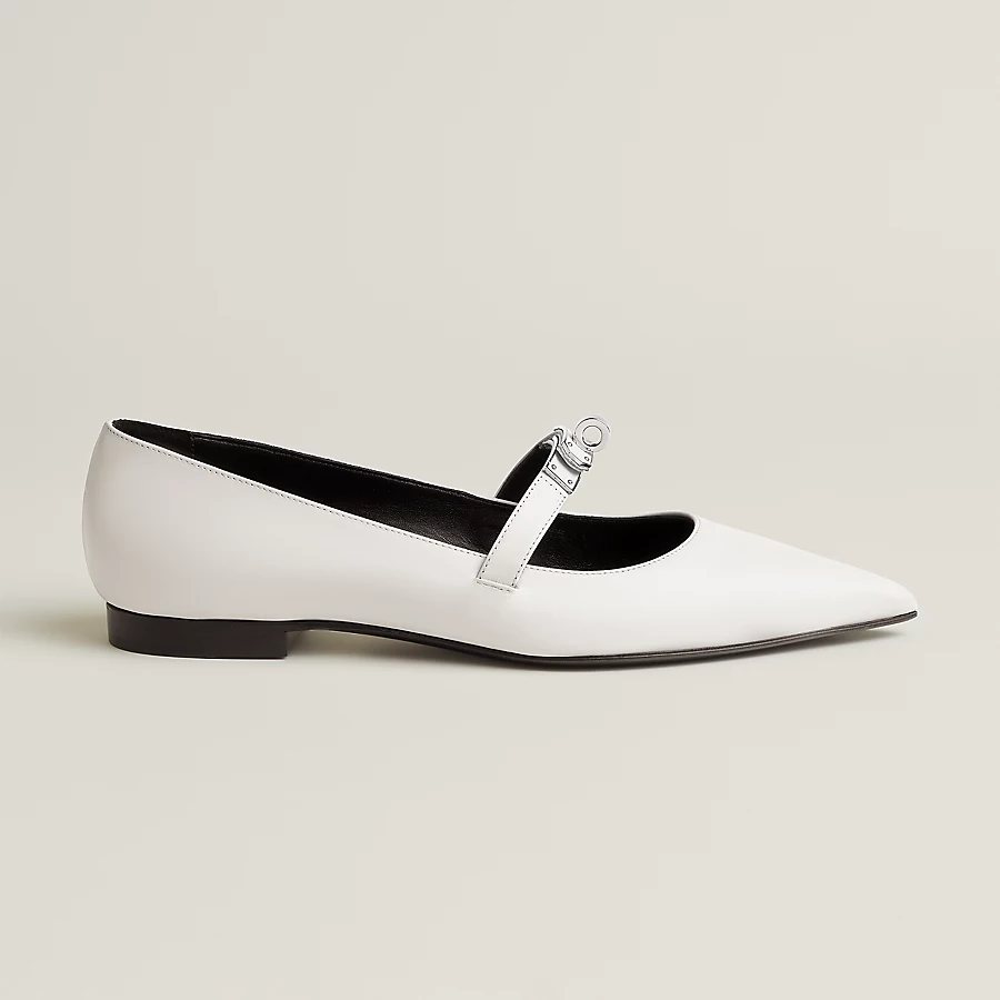 Pointed-toe ballet flat in calfskin with iconic Kelly buckle.