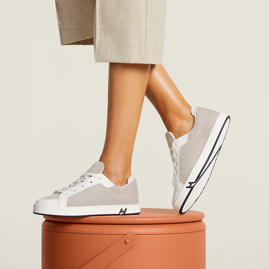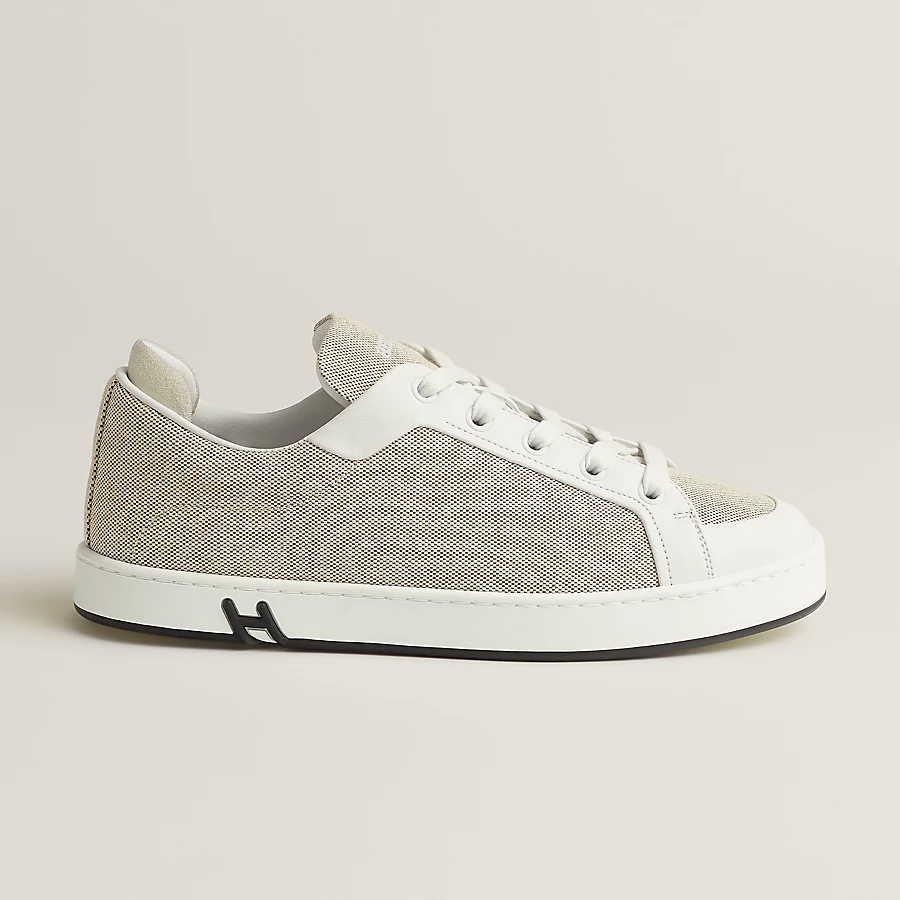 Sneaker in H canvas, calfskin and suede goatskin with signature “H” detail.