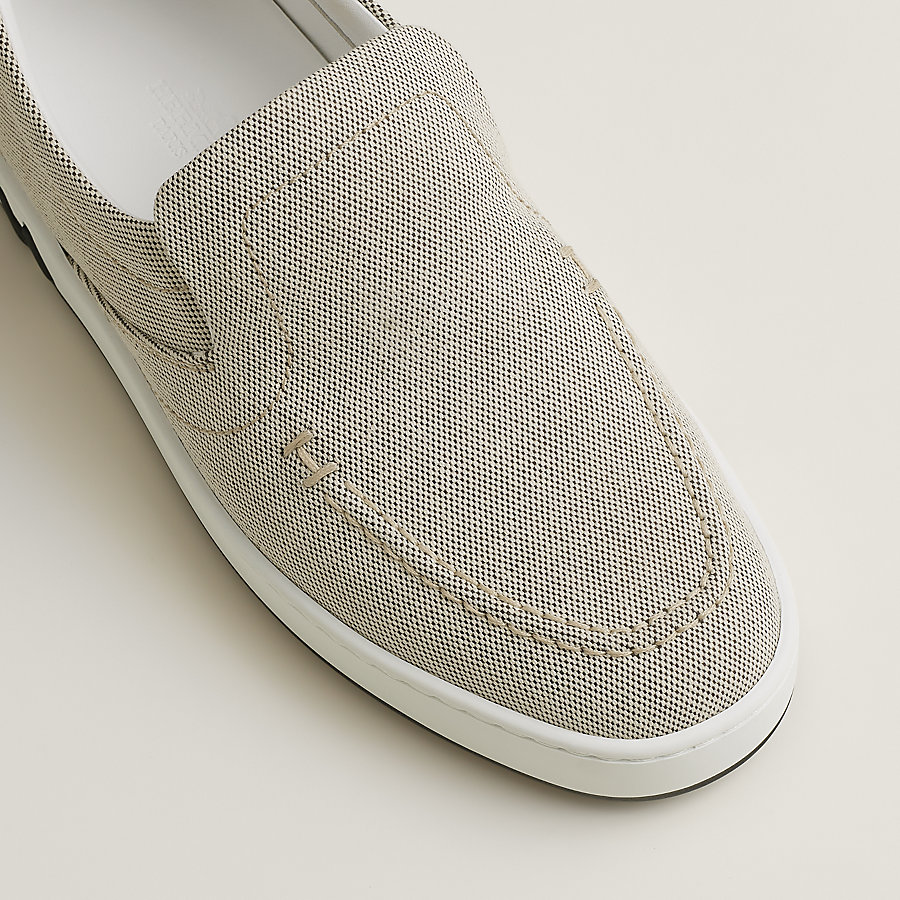 Slip-on sneaker in H canvas and suede goatskin with signature “H” detail.