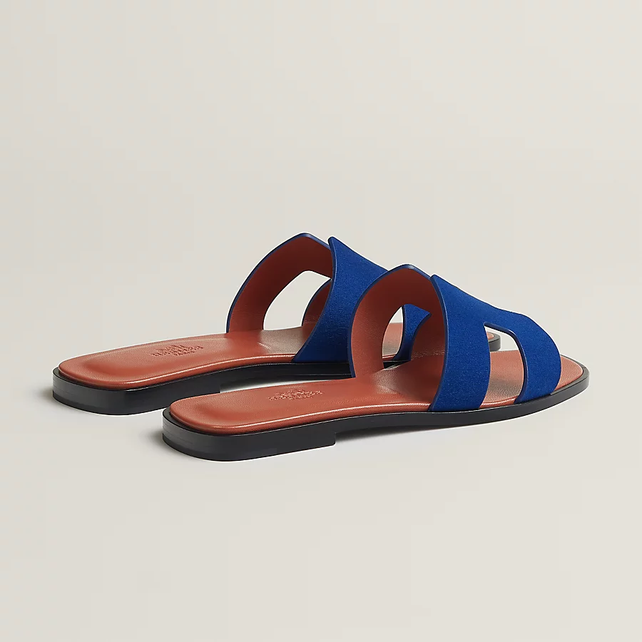 Sandal in suede goatskin with iconic “H” cut-out and straight-cut edges.