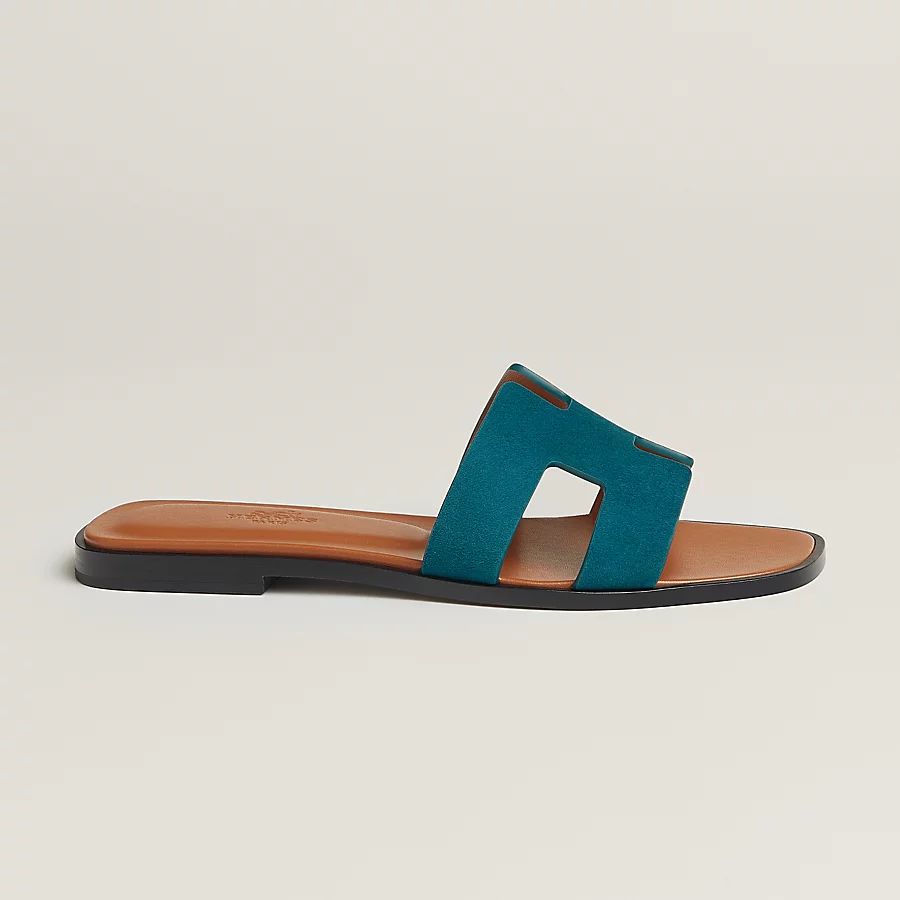 Sandal in suede goatskin with iconic “H” cut-out and straight-cut edges.
