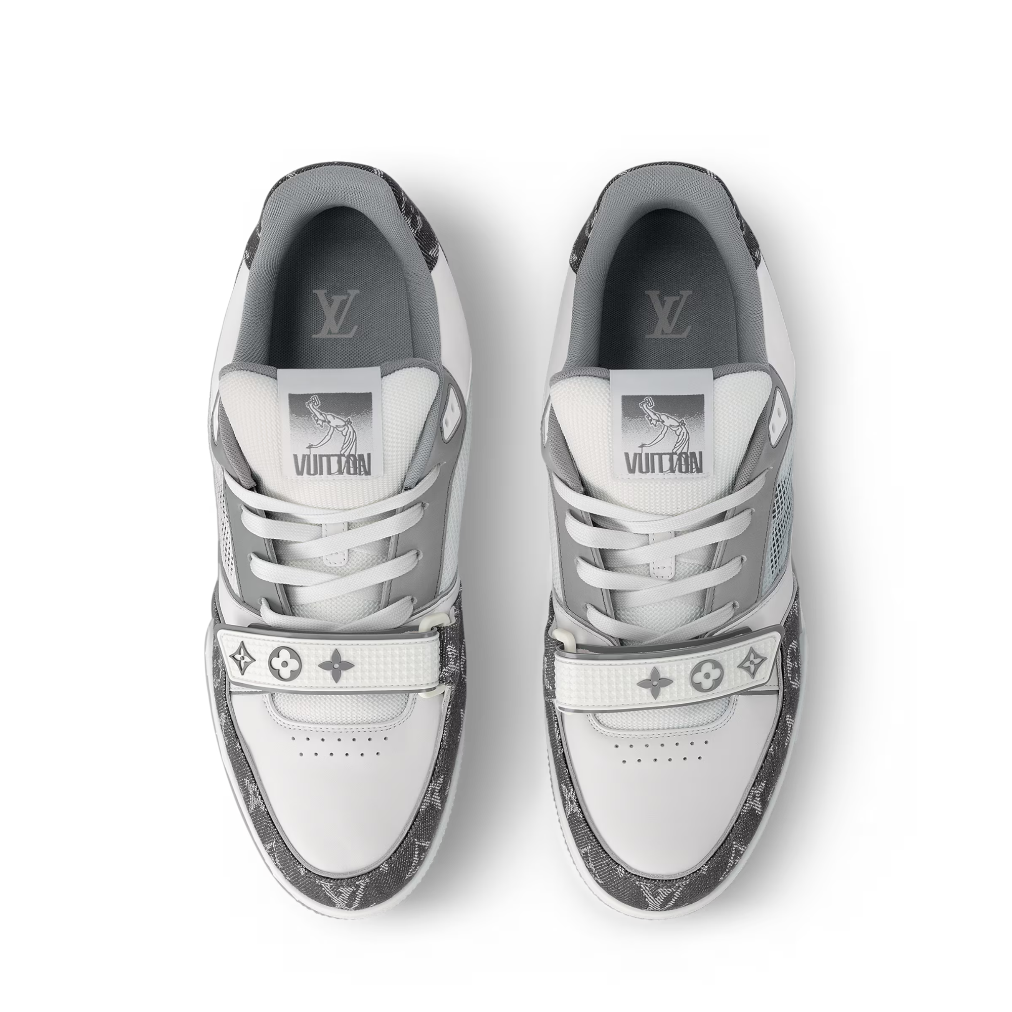 This reinterpretation of the iconic LV Trainer sneaker comes in a mix of materials, including Monogram denim and technical mesh. Its upper features rich detailing, including Louis Vuitton in script lettering on the side and an embroidered Vuitton signature at the back. Monogram Flowers decorate both the rubber outsole and the adjustable velcro strap.