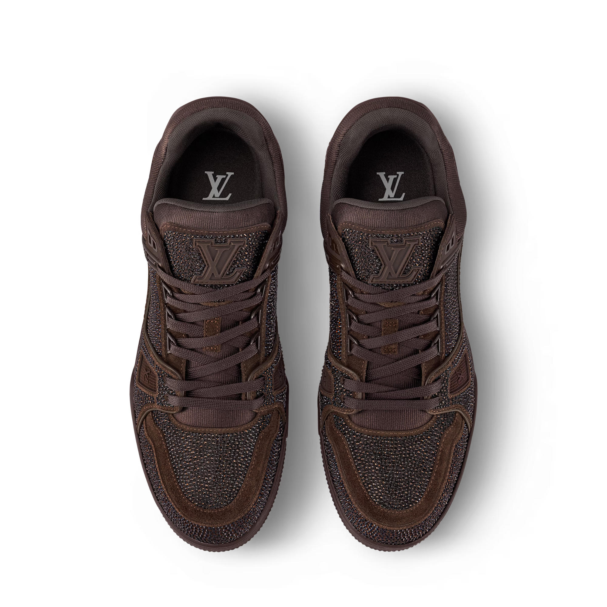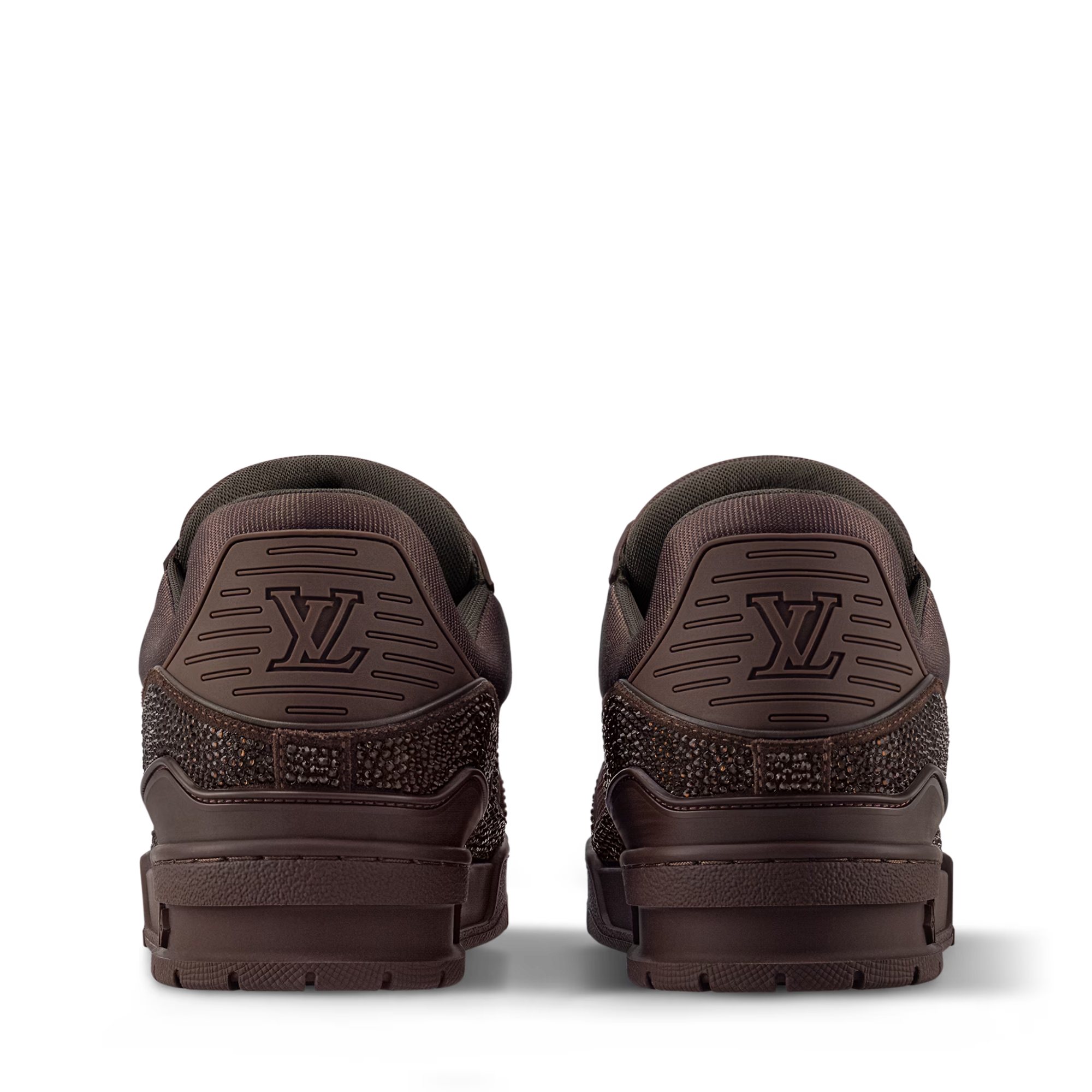 This exclusive edition of the LV Trainer sneaker is entirely covered in sparkling Swarovski™ crystals. This iconic model was originally designed by Virgil Abloh, who drew inspiration from vintage basketball sneakers. The technical rubber outsole, which is decorated with Monogram Flowers, is matched to the upper for a smart, monochrome look.