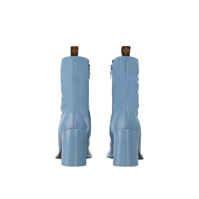 The Berlin ankle boot closed Nicolas Ghesqui猫re��s 10th anniversary fashion show for Louis Vuitton with a spectacular array of rainbow shades. This retro-futuristic model is crafted from hand-colored calf leather and embellished with quilted and perforated details inspired by biker jackets. It is finished with a sturdy block heel.