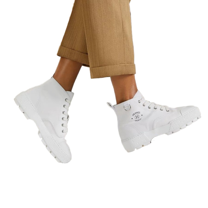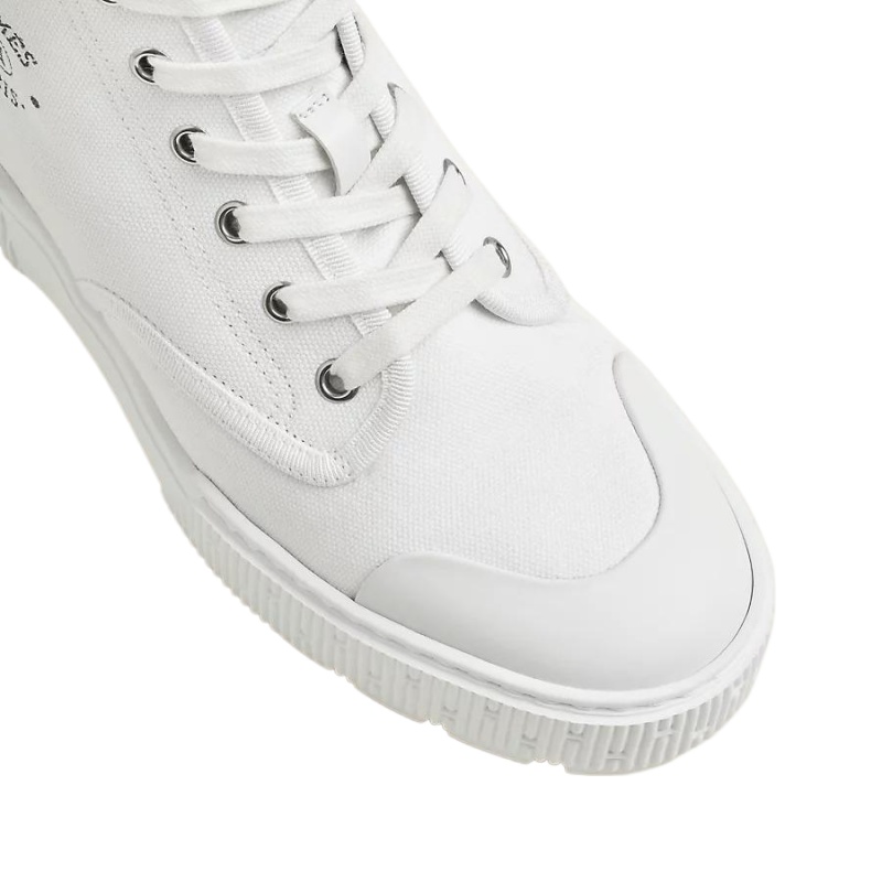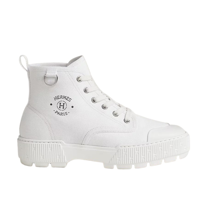 Ankle boot in cotton canvas and calfskin with rubber sole and signature “Hermès Paris” stencil.