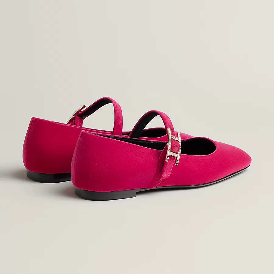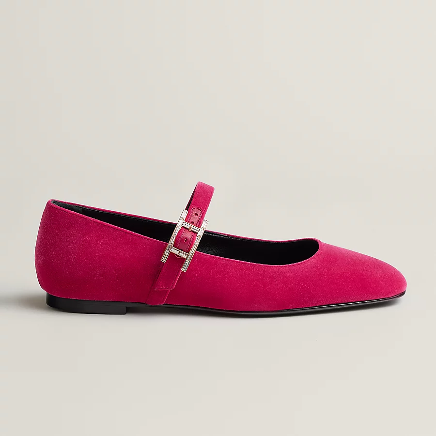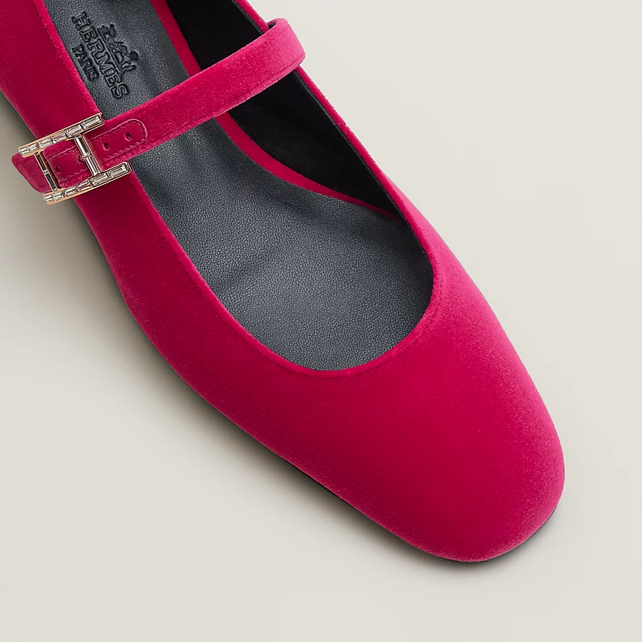 Mary Jane shoe in velvet featuring a rose gold-plated Hapi buckle with rhinestone details.