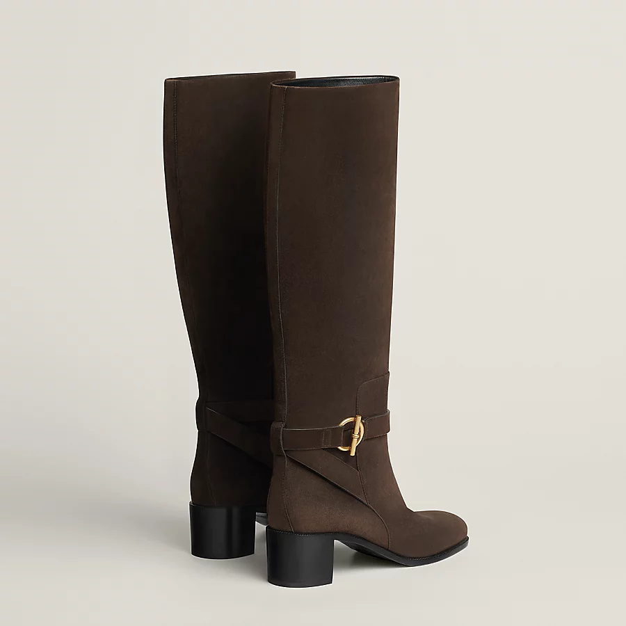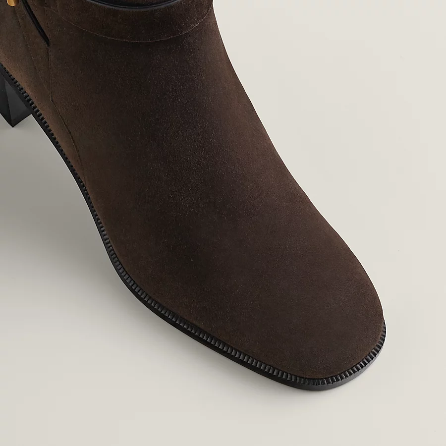 High heel boot in suede calfskin featuring the iconic aged golden Glenan buckle.