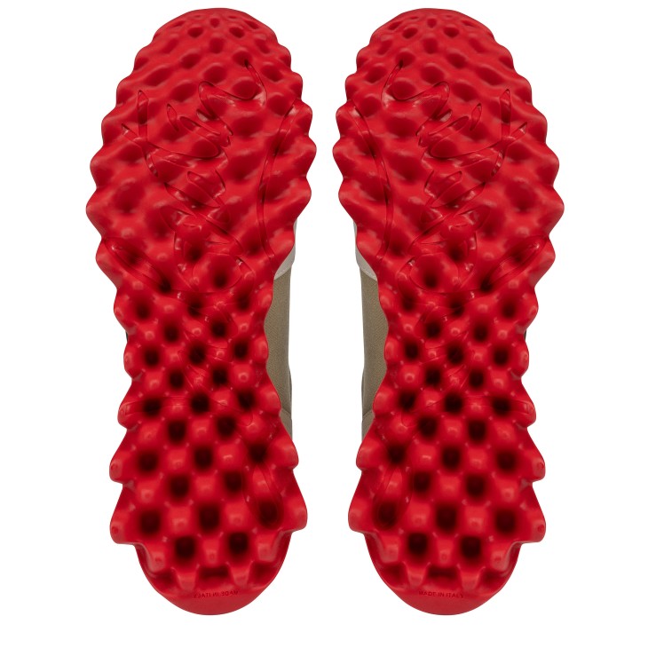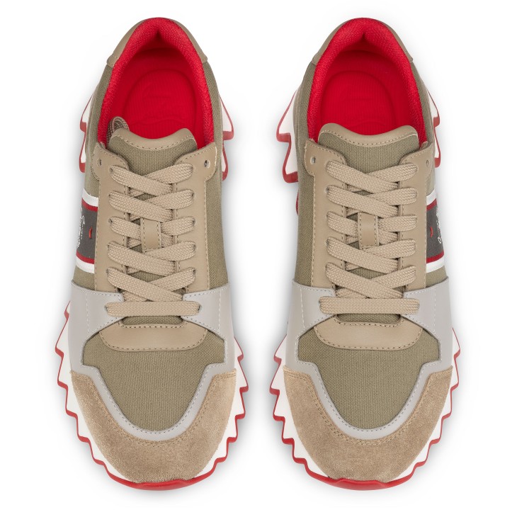 The Nastroshark sneaker for women has an audacious look. Inspired by the iconic Loubishark, it sits on a two-color rubber sole evoking shark teeth. This model in all-over white is crafted in calf leather and fabric. This sporty sneaker features a signature Maison Christian Louboutin three-color ribbon.