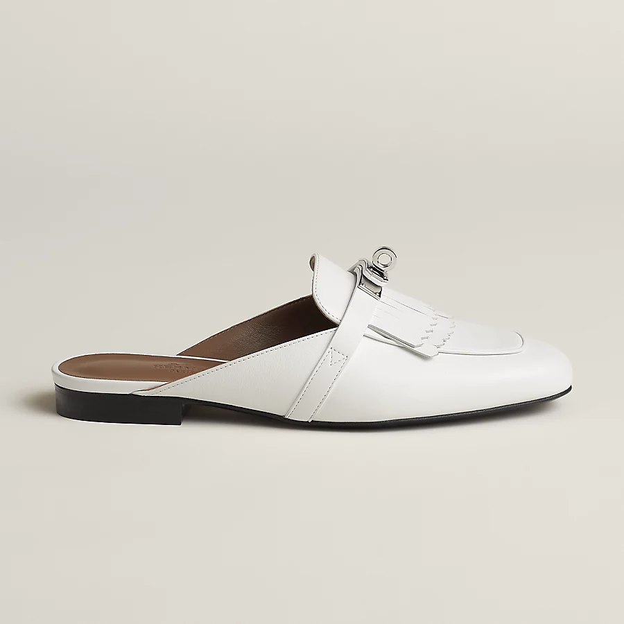 An elusive icon, the Kelly buckle always appears where it’s not expected. It slips freely from a bag to a shoe, repeatedly featured on boots, mules, loafers or sandals. Whether in gold, platinum, metal, or leather, in mini or maxi formats, it’s available in multiple styles for an endless number of bold looks.
