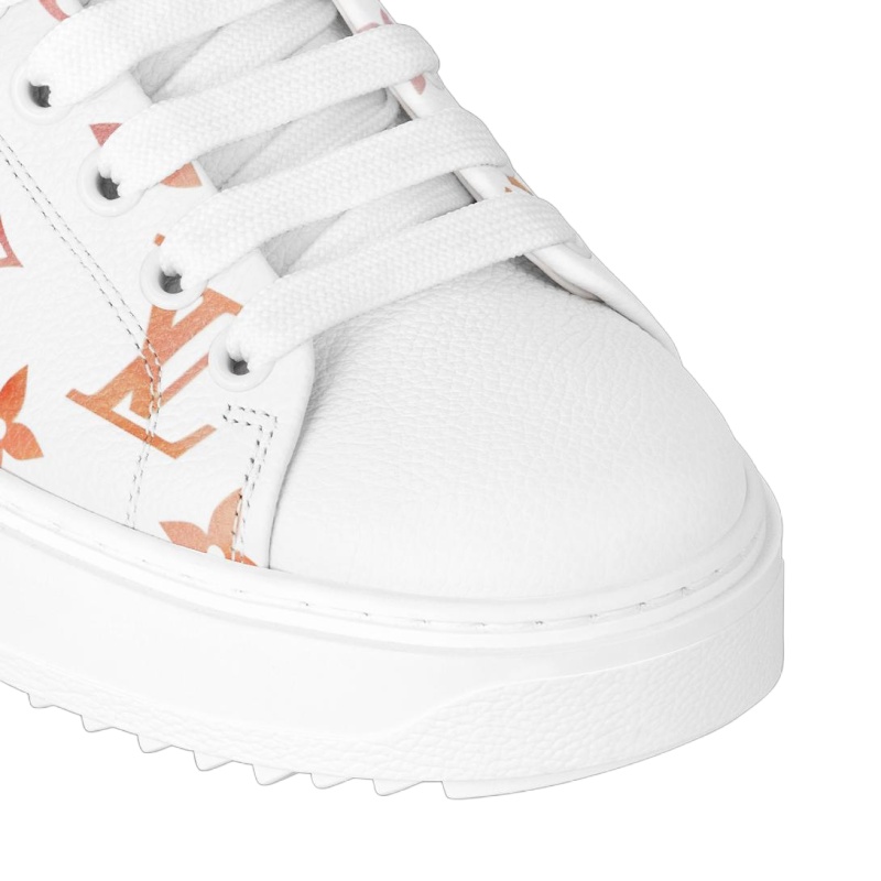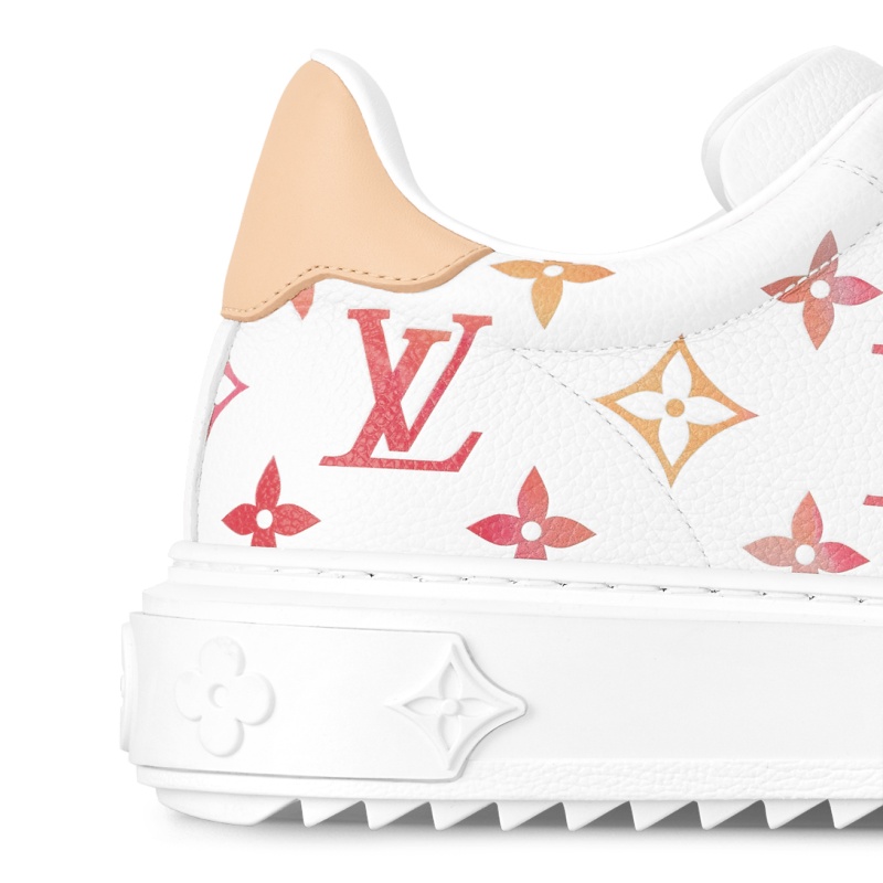 This seasonal edition of the classic Time Out sneaker comes in calf leather debossed with the Monogram pattern in a gradation of summery shades, creating a refined watercolor effect. This model is notable for its on-trend platform outsole and its rich detailing, including engraved, gold-tone eyelets and natural leather trim at the back.