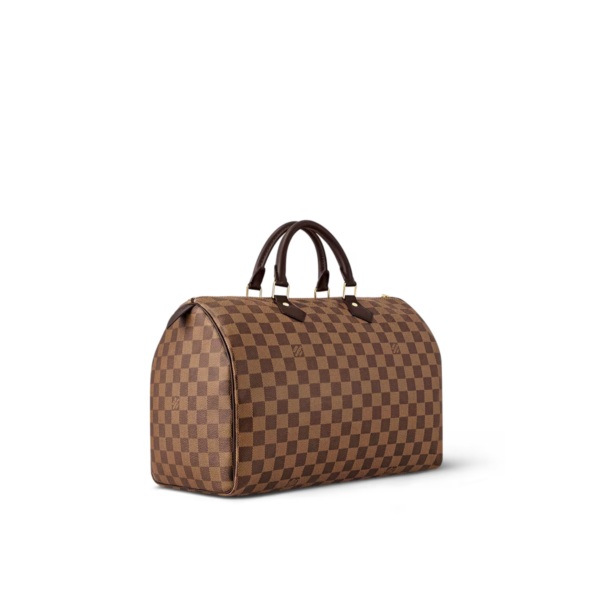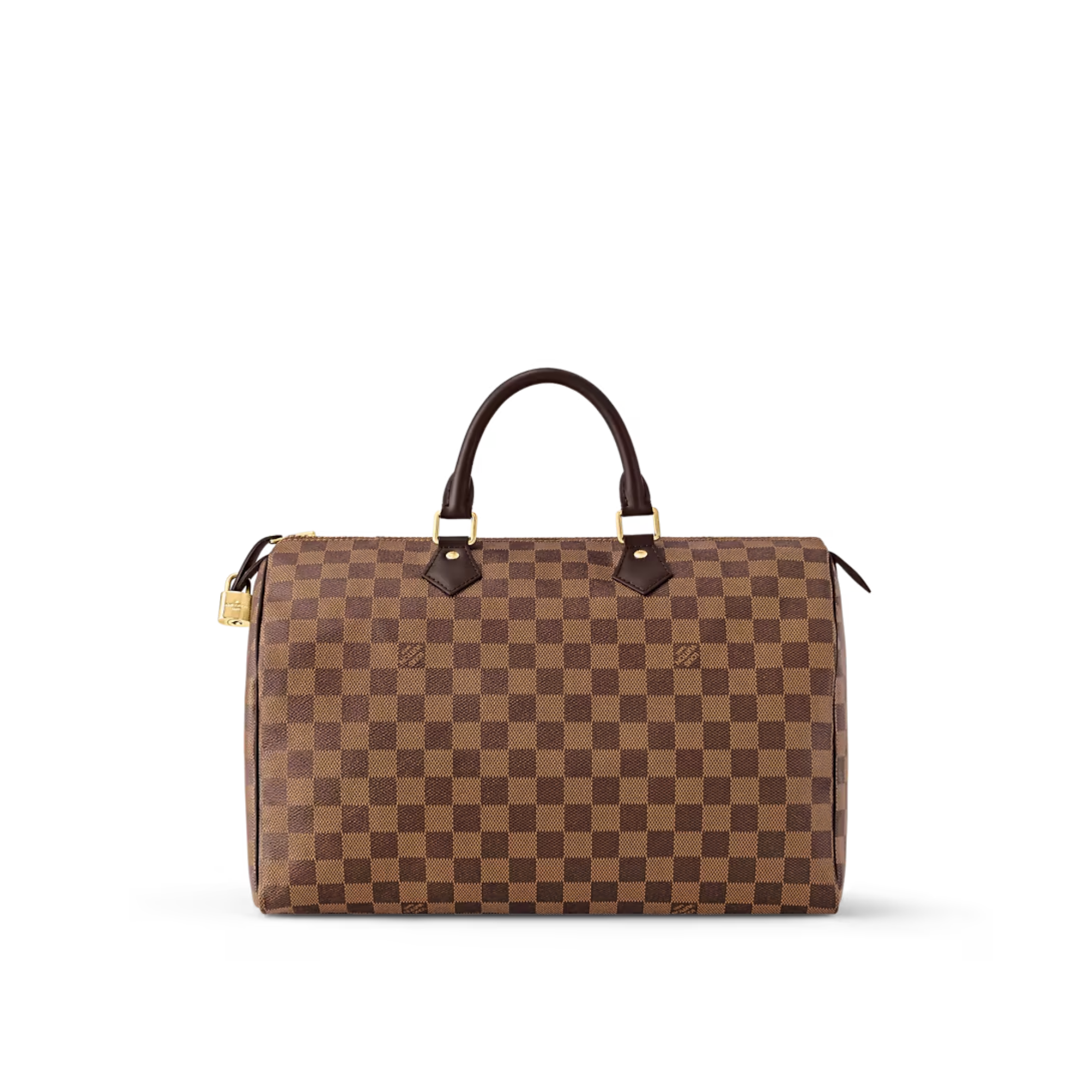 Made from elegant Damier Ebene canvas, the Speedy 35 is a stylish handbag for both travel and daily use. Launched in 1930 as the "Express" and inspired by that era's rapid transit, today’s updated Speedy remains a timeless House icon, with its unmistakable silhouette, rolled leather handles and engraved, signature padlock.