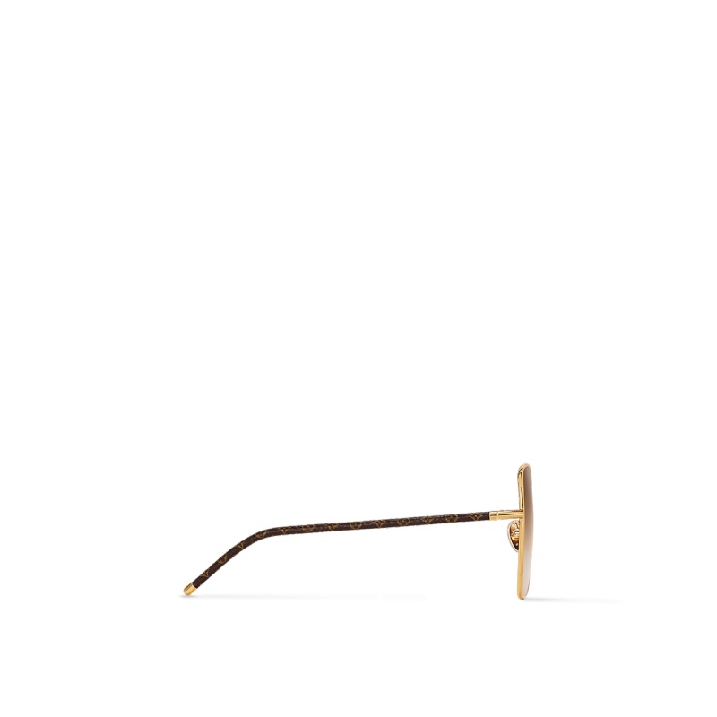 This new square model joins the LV First family of stylish sunglasses. An ultra-light frame in gold-colour metal accentuates the squared-off lenses, complementing the round temples lined with the House��s emblematic Monogram canvas. With their timeless yet modern shape paired with classic brown lenses, these sunglasses combine everyday elegance with an understated signature touch.