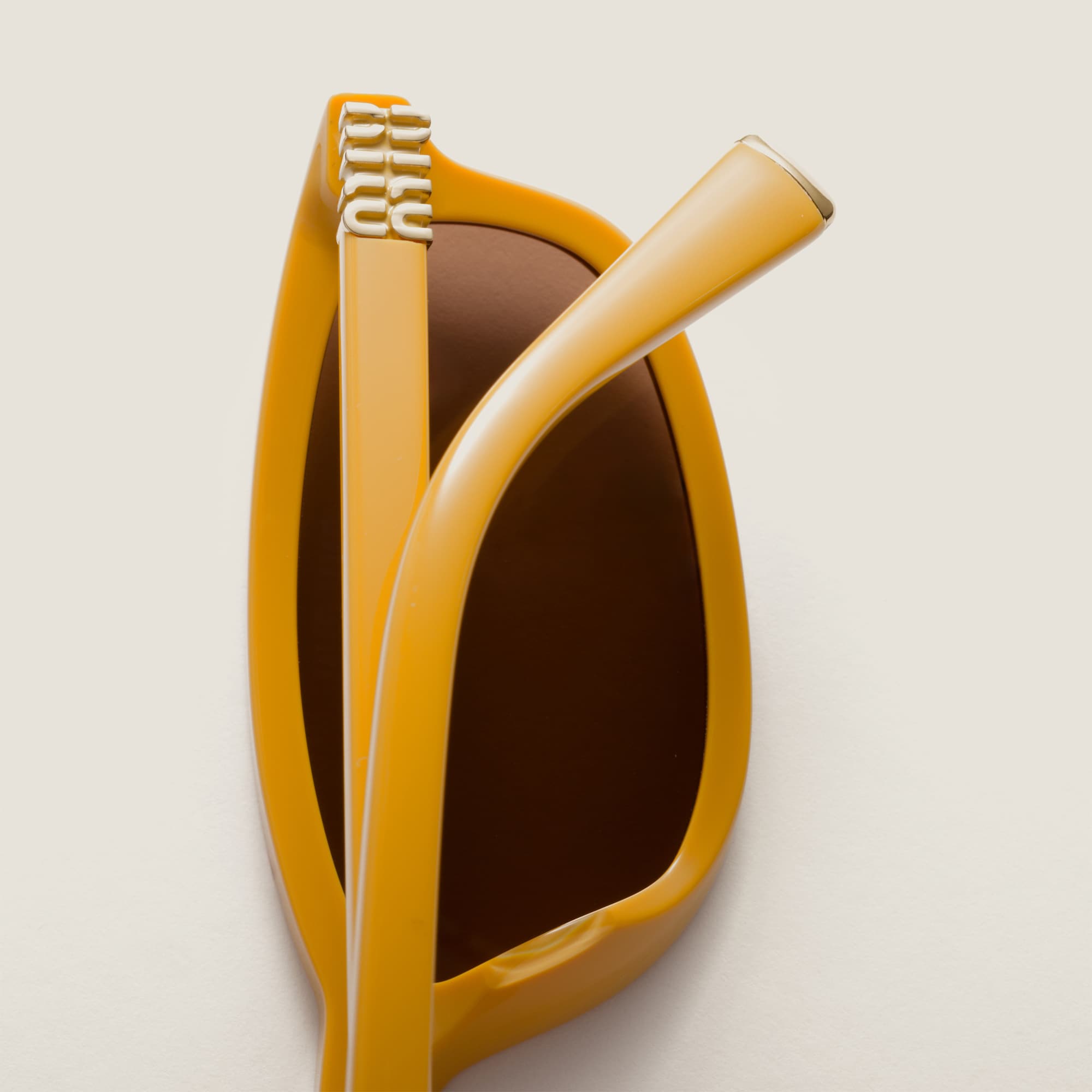 Miu Regard sunglasses are reinterpreted in a new sophisticated, classic version. The low-profile frame has rectangular lenses, while the slim rims emphasize the extreme lightness. The temples are embellished with the refined touch of the vertical Miu Miu logo.