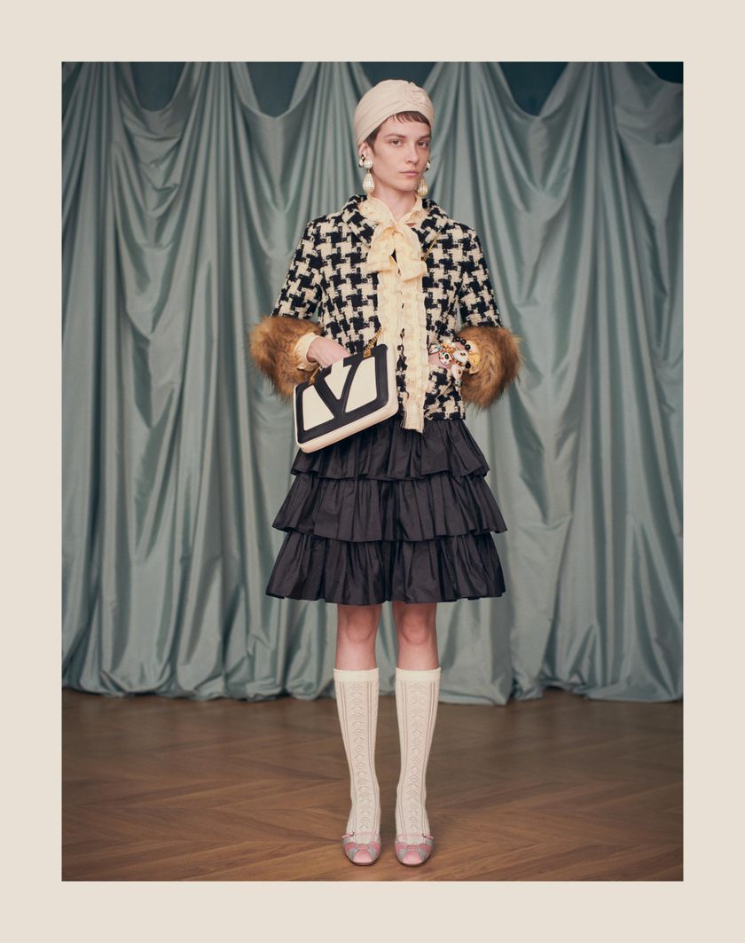 Valentino Garavani Bowow pump with strap in moiré fabric with crystal appliqués and scallop motif